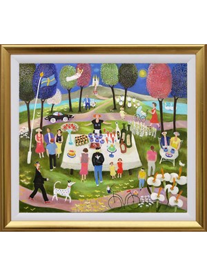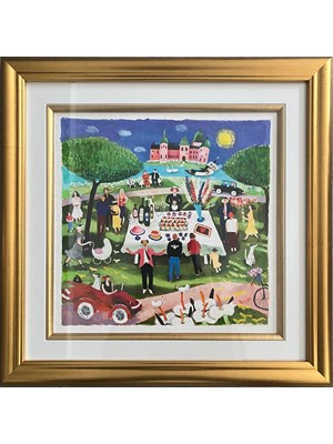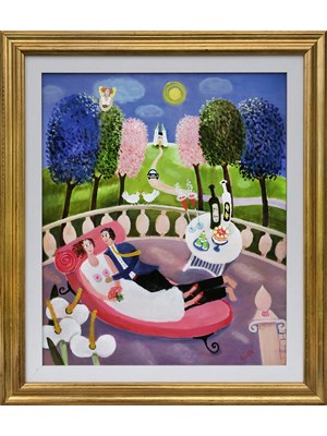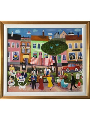 Jag gör bilder i en glad, naivistisk anda med lite av livets verklighet och mycket av livets drömmar som gör vardagen lite roligare.